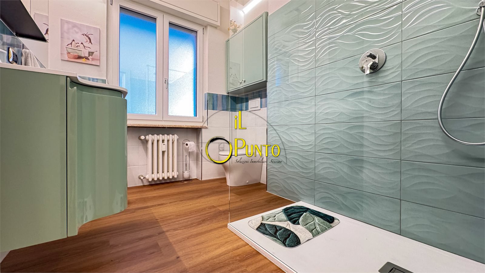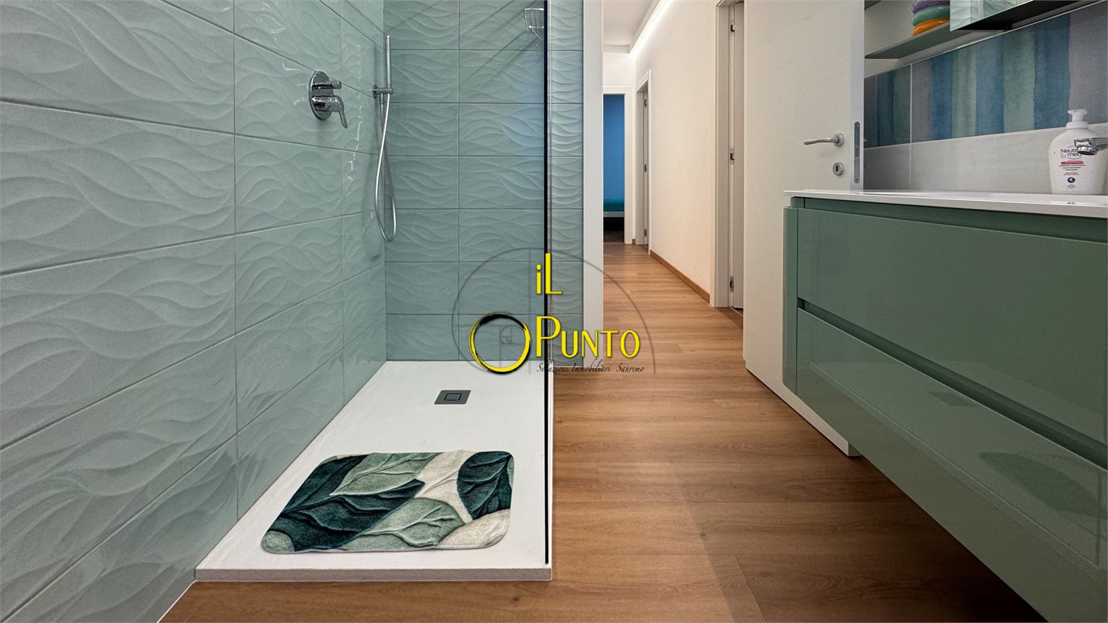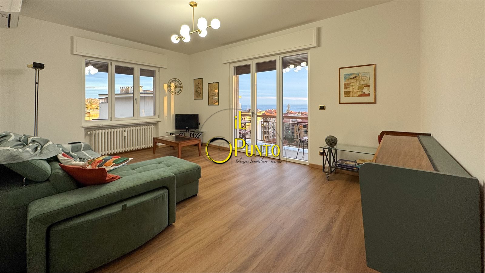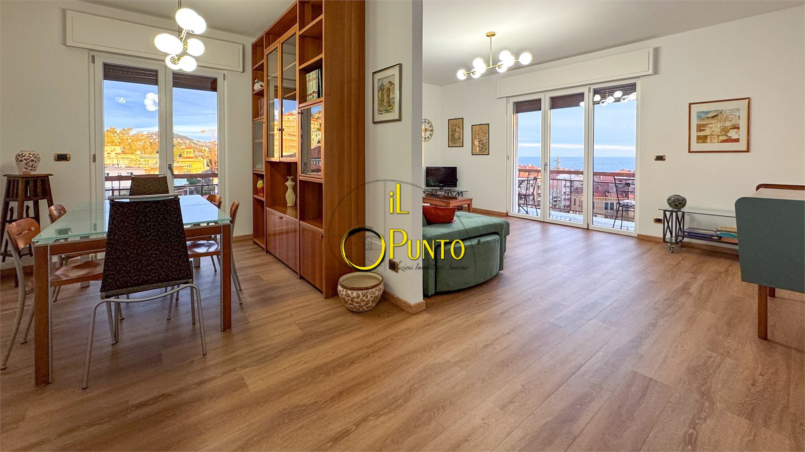 Renovated apartment consisting of spacious entrance hall, large living room, dining room, kitchenette, terrace overlooking the sea, hallway, 2 double bedrooms, 1 single bedroom, two bathrooms, two balconies and closet.